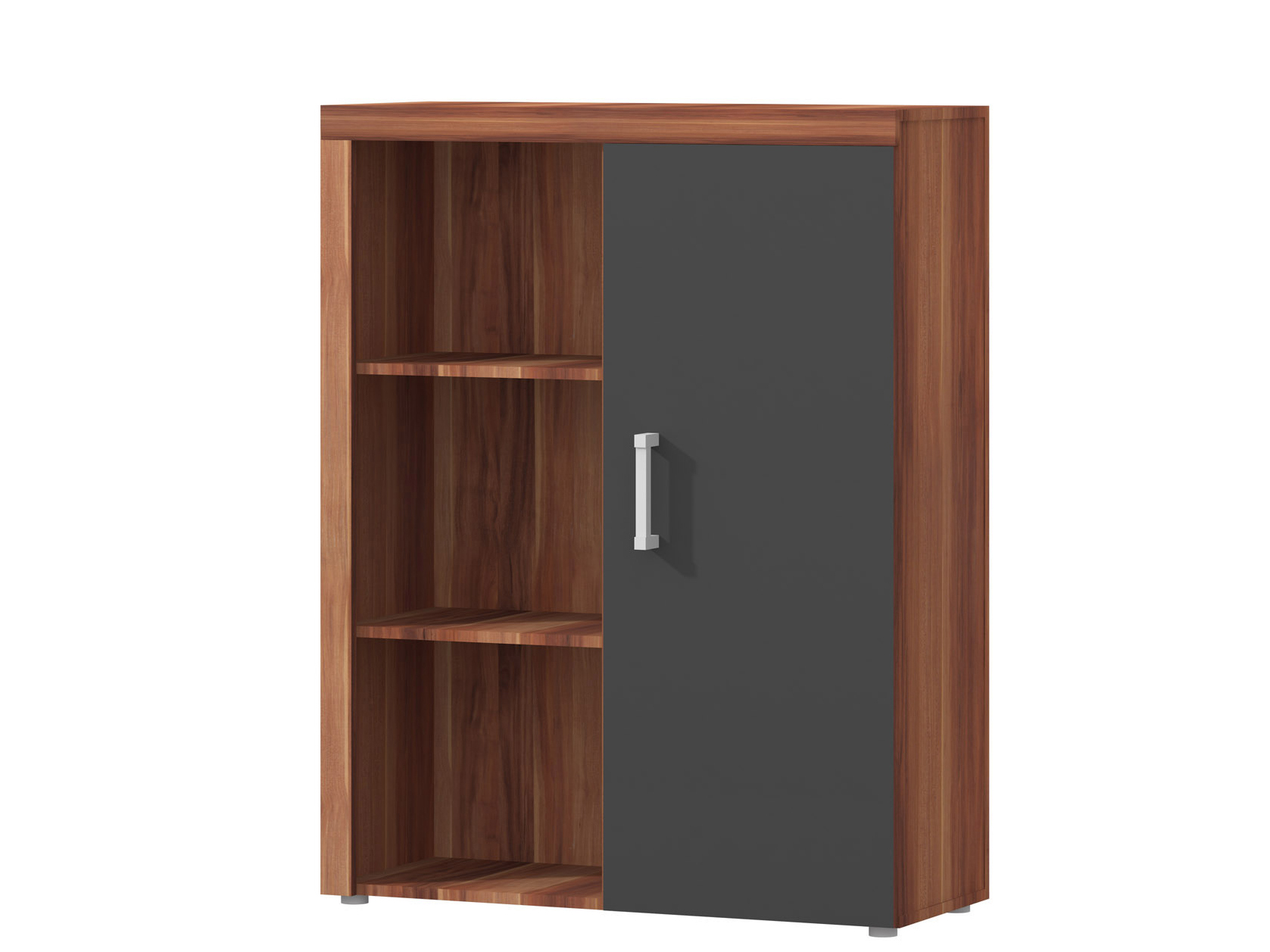 Skrinka Salford S3 (slivka + grafit) výška 114 cm hĺbka 35 cm Skladá sa z menšej, praktickej skrinky s príjemným dizajnom, kde dominuje farebné prevedenie slivka a vo farebnom prevedení grafit. Ľavá časť má otvorené police, kam môžete umiestniť knihy a dekorácie. Pravá časť je vybavená dvierkami. Skrinka je vhodná do moderných obývacích izieb, pracovní alebo spální. Materiál je laminovaná drevotrieska (LTD) s hrúbkou 16 mm a obsahuje ABS. Úchyt je plastový a pánty sú kovové. Modelový rad Salford kombinuje tradičný dizajn s modernými prvkami. Segmenty kombinujú prírodnú kresbu dreva s frontami v prevedení grafit. V modelovom rade sa nachádza praktický nábytok, ako regále na knihy a dekorácie, elegantné vitríny, poličky a TV stolík, ktorý má miesto na audio/video zariadenia a je dostatočne široký aj na Váš televízor a dekorácie. Pre tých, ktorí túžia po elegantnom nábytku, je modelový rad Salford správnou voľbou.