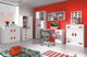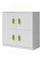 Skrinka moderného dizajnu vhodná do detských a študentských izieb. Skrinka má štyri dvierka s farebnými úchytmi. Skrinka je v bielom farebnom prevedení.