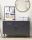 Skrášlite interiér svojej domácej kancelárie s touto multifunkčnou komodou v industriálnom štýle. Vďaka dvom poličkám ukrytým za dvierkami je možné skrinku použiť na uloženie oblečenia, ale aj dôležitých dokumentov, papierov a ďalších vecí. Je vyrobená z odolnej ocele a nevyžaduje si časovo náročnú údržbu. Matná čierna farba vám umožní zladiť skrinku s rôznymi štýlmi interiéru a dodá im moderný nádych.