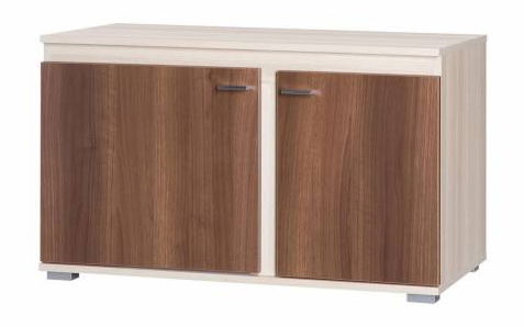 Nízka skrinka s dvierkami na stranách a poličkami vo vnútri