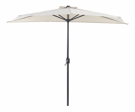 Chráňte sa pred slnečným žiarením a užívajte si chvíle strávené vonku v príjemnom tieni tohto štýlového polkruhového slnečníka. Vďaka polkruhovému tienidlu ho môžete umiestniť na balkón alebo menšiu terasu a oprieť ho o stenu, pretože zadná strana baldachýnu je rovná a nie zaoblená. Slnečník je vyrobený z odolných materiálov odolných proti UV žiareniu, čo znamená, že jeho farba tak rýchlo nevybledne. Dá sa ľahko otvárať a zatvárať vďaka kľukovému mechanizmu.
