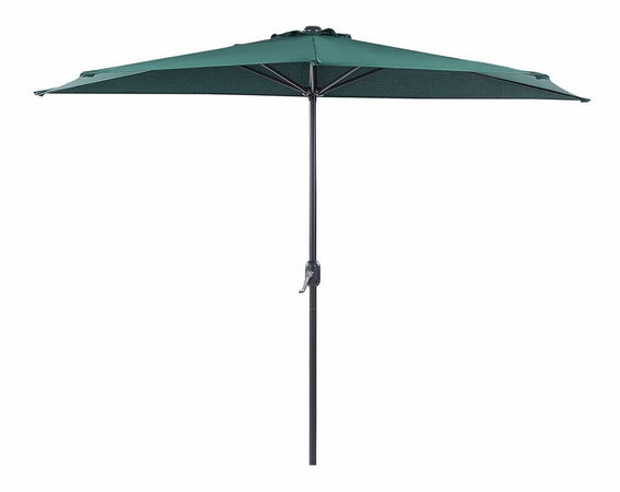 Chráňte sa pred slnečným žiarením a užívajte si chvíle strávené vonku v príjemnom tieni tohto štýlového polkruhového slnečníka. Vďaka polkruhovému tienidlu ho môžete umiestniť na balkón alebo menšiu terasu a oprieť ho o stenu, pretože zadná strana baldachýnu je rovná a nie zaoblená. Slnečník je vyrobený z odolných materiálov odolných proti UV žiareniu, čo znamená, že jeho farba tak rýchlo nevybledne. Dá sa ľahko otvárať a zatvárať vďaka kľukovému mechanizmu.