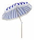 Tento záhradný slnečník v okamihu osvieži vzhľad akéhokoľvek vonkajšieho priestoru a vnesie doň nádych retro štýlu. Je vyrobený z kvalitných materiálov, takže odolá rôznym poveternostným podmienkam. Vrchná časť slnečníka v modro-bielom prevedení je vyrobená z recyklovaného polyesteru, ktorý je odolný voči UV žiareniu. Tyč z bukového dreva zaručuje odolnosť a vďaka nastaviteľnému ramenu možno slnečník nakloniť podľa potreby. Slnečník sa dodáva v praktickom obale s držadlami, vďaka ktorému je prenášanie či skladovanie slnečníka oveľa jednoduchšie.