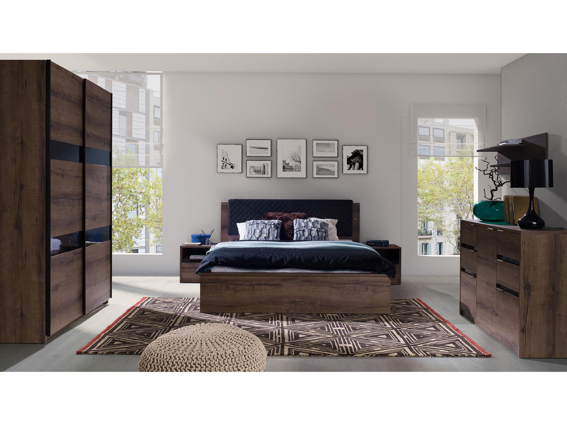 Premeňte svoju spálňu na oázu štýlu a pohodlia s kolekciou Desayuno 1. Kombinácia teplého dekoru dub monastery a elegantného čierneho lesku vytvára luxusnú, no zároveň útulnú atmosféru. Praktická šatníková skriňa, nočné stolíky a komoda ponúkajú veľkorysý úložný priestor na všetky vaše potreby. Dominantou je manželská posteľ s čalúneným čelom z čiernej ekokože, ktorá láka na oddych a pokojný spánok. Táto zostava prináša do vášho domova štýl, funkčnosť a nenútenú eleganciu.