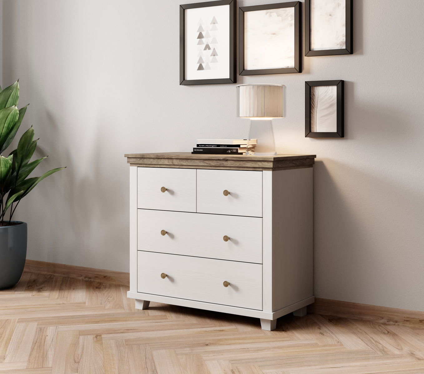 Spálňa Elvina S v vás očarí svojou harmóniou a praktickosťou. V bielom popole a dubovom prevedení je ideálnou voľbou pre tých, ktorí hľadajú funkčný dizajn s prvkami škandinávskeho minimalizmu. Tento nábytok poskytuje dostatok úložného priestoru a skladá sa z postele a šatníkovej skrine, ktoré sú k dispozícii v rôznych veľkostiach. K spálni dokonale zapadnú aj nočné stolíky a dizajnová komoda s praktickým rozložením priestoru. Materiál korpusu aj predných strán je fóliovaná drevotrieska, úchytky sú z plastu a vrchná doska má hrúbku 38 mm. Bočné strany sú z fóliovanej dosky o hrúbke 15 mm, zadná strana z HDF dosky o hrúbke 3 mm a dverky z fóliovanej dosky o hrúbke 18 mm. Zásuvky sú tiež z fóliovanej dosky o hrúbke 18 mm a majú guličkové vedenie a tichý dojazd. Poličky majú hrúbku 15-22 mm a rozmery zrkadla sú 148,8x33,6 cm. Vdýchnite vašej spálni moderný nádych s touto úžasnou kolekciou, no vytvára miesto plné pohody a vkusu.