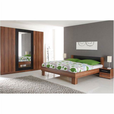 Elegantná spálňa v prevedení orech, ktorá sa skladá z manželskej postele, 2 nočných stolíkov a rozmernej šatníkovej skrine. Štvordverová šatníková skriňa Martina so zrkadlom v strede na dvoch dverách. Skriňa je vyrobená v prevedení orech a dvoje dverí v strede má okolo zrkadla čiernu farbu. Minimalistické tenké sivé úchyty. Vo vnútri skrine je v ľavej časti vešiaková tyč pod hornou poličkou. V pravej časti skrine sa nachádzajú hlboké zásuvky. Elegantná manželská posteľ so šírkou matraca 180 cm v prevedení orech a čierna. Posteľ je bez úložného priestoru a čierna farba je použitá na väčšej časti čela postele. K posteli sú automaticky 2 nočné stolíky v odtieni orech so sivými tenkými úchytmi, ktoré sa skladajú z dvoch zásuviek nad sebou. Horná zásuvka nočného stolíka je v čiernej farbe.