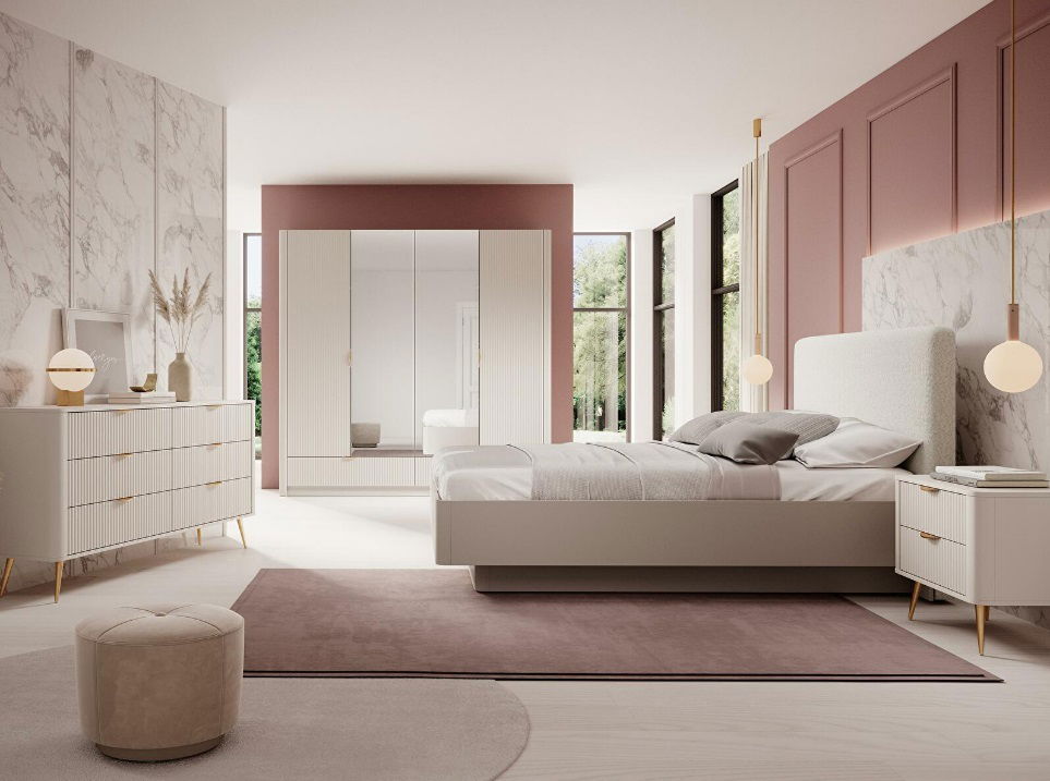 spálňová zostava Lethe pon je viac než len nábytok – je to atmosféra. Ponúka elegantné a sofistikované riešenie pre moderný interiér. Sústava zahŕňa nočné stolíky a komodu, ktoré sa vyznačujú jemným dizajnom a prepracovanými detailmi. Zosúladené prvky nábytku majú hladké povrchy a jemné línie, ktoré dodávajú miestnosti nádych luxusu. V kombinácia svetlých farieb a jemných zlatých akcentov vytvára dojem ľahkosti a priestoru. Táto je ideIdeálna pre tých, ktorí hľadajú moderné a vkusné riešenie pre svoju spálňu, ktorá zanechá dojem a pocit výnimočnosti.