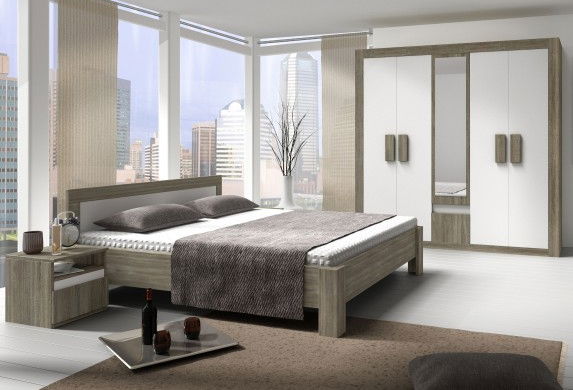 Spálňová zostava Mediolan sa skladá z dvoch nočných stolíkov, manželskej postele a šatníkovej skrine a bude Vás rozmaznávať svojím luxusným výzorom a spracovaním. Vyrobená je z DTD laminovanej, farebné prevedenie je dub sonoma trufel + biela farba. K zostave si môžete prikúpiť komodu.