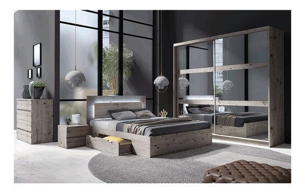 Spálňa Talago (dub Welington) je štýlová a elegantná súprava nábytku pre vašu spálňu. Materiál z laminovanej DTD zaručuje vysokú kvalitu a odolnosť. Šatníková skriňa s rozmermi 215x230x62 cm má dvojdverový dizajn s posuvnými zrkadlovými dverami a vešiakovú a policovú časť. Široké police majú nosnosť 15 kg a užšie police 10 kg. Odporúčame ju pripevniť k stene pre maximálnu stabilitu. Manželská posteľ má rozmer 100x167x204 cm a plochu spania 160x200 cm. Má tiež LED osvetlenie na čele postele a úložný priestor v podobe dvoch zásuviek. Súprava nezahŕňa rošt a matrac. Nočný stolík má rozmery 43x47x41 cm s nosnosťou 10 kg, s dvomi zásuvkami a na nožičkách. Balenie obsahuje 2 nočné stolíky. Táto súprava nábytku Talago poskytne vašej spálni moderný vzhľad a elegantné riešenie pre úložný priestor.