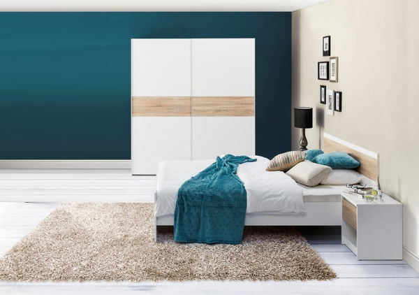 Spálňová zostava Venecia II je moderného charakteru. Korpus aj dvierka sú vyrobené z kvalitného LTD. Farebné prevedenie je biela v kombinácii s farbou dreva dub sonoma. K spálni si môžete priobjedať aj dve praktické komody.
