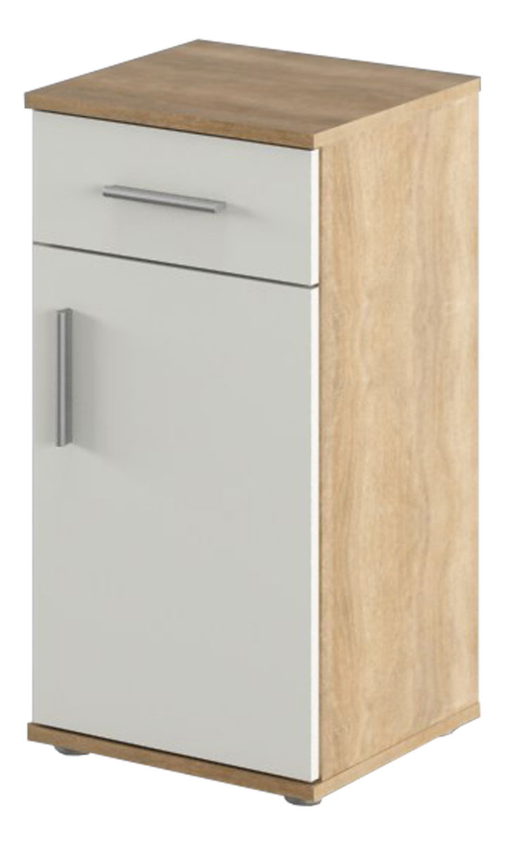 Z našej ponuky vyberáme pre vás spodnú kúpelňovú skrinku Leah 03 v dubovom sonoma prevedení s bielou matnou farbou. Táto skrinka je vysoká 75,1 cm, široká 38 cm a hlboká 35 cm. Je ideálnym doplnkom pre vašu kúpeľňu, pretože dokonale zaplní prázdny priestor. Skladá sa z jednej police s dvierkami a jedného šuplíka, takže v nej nájdete dostatok miesta na uskladnenie všetkých potrebných vecí. Skrinka Leah 03 je skvelou voľbou pre tých, ktorí hľadajú funkčný a štýlový nábytok pre svoju kúpeľňu.