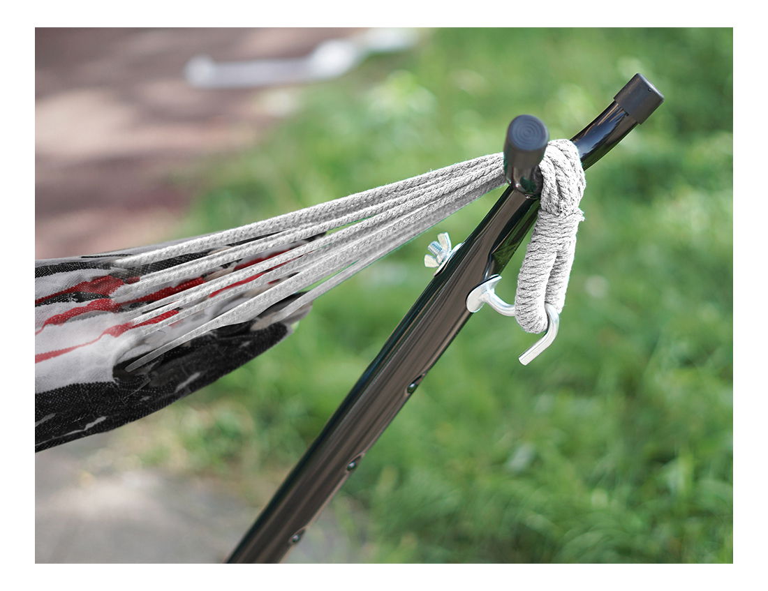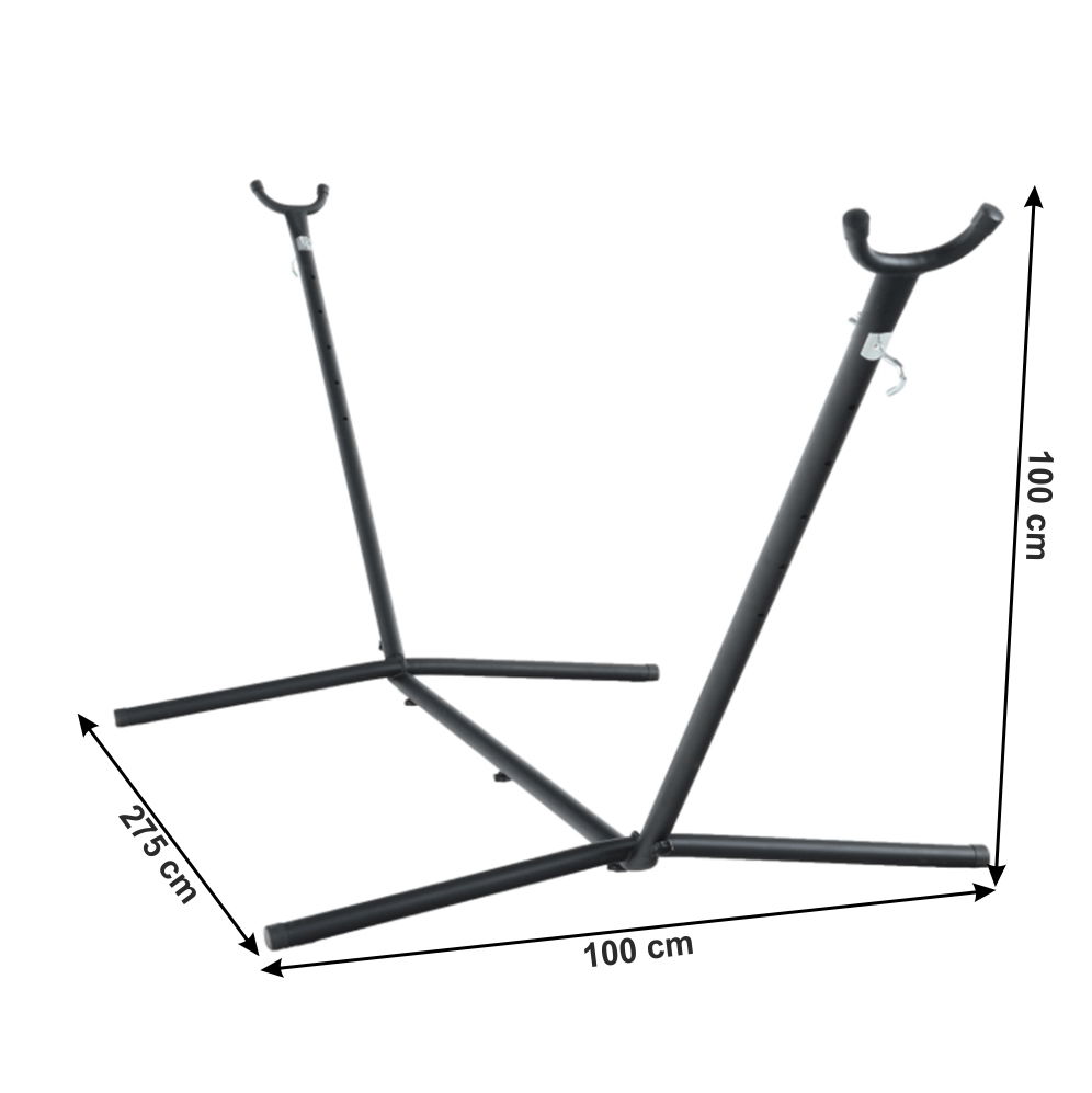 Stojan na hojdaciu sieť Olato (čierna) výška 100 cm hĺbka 100 cm Čierna farba je ideálnym doplnkom k hojdacej sieti alebo závesnému kreslu. Tento stojan je vyrobený z kvalitnej ocele, čo zaručuje jeho vysokú pevnosť a trvanlivosť. Je určený pre jednu alebo dve osoby a môže byť zavesený sietou s maximálnou hmotnosťou do 130 kg. Odporúčame umiestniť ho na rovný a pevný povrch pre väčšiu stabilitu. Stojan na hojdaciu sieť Olato vám prinesie príjemné chvíle oddychu a relaxu. S týmto doplnkom si môžete užívať svoj voľný čas na záhrade alebo na terase. Je to ideálny doplnok pre každého, kto chce stráviť chvíle oddychu v prírode.