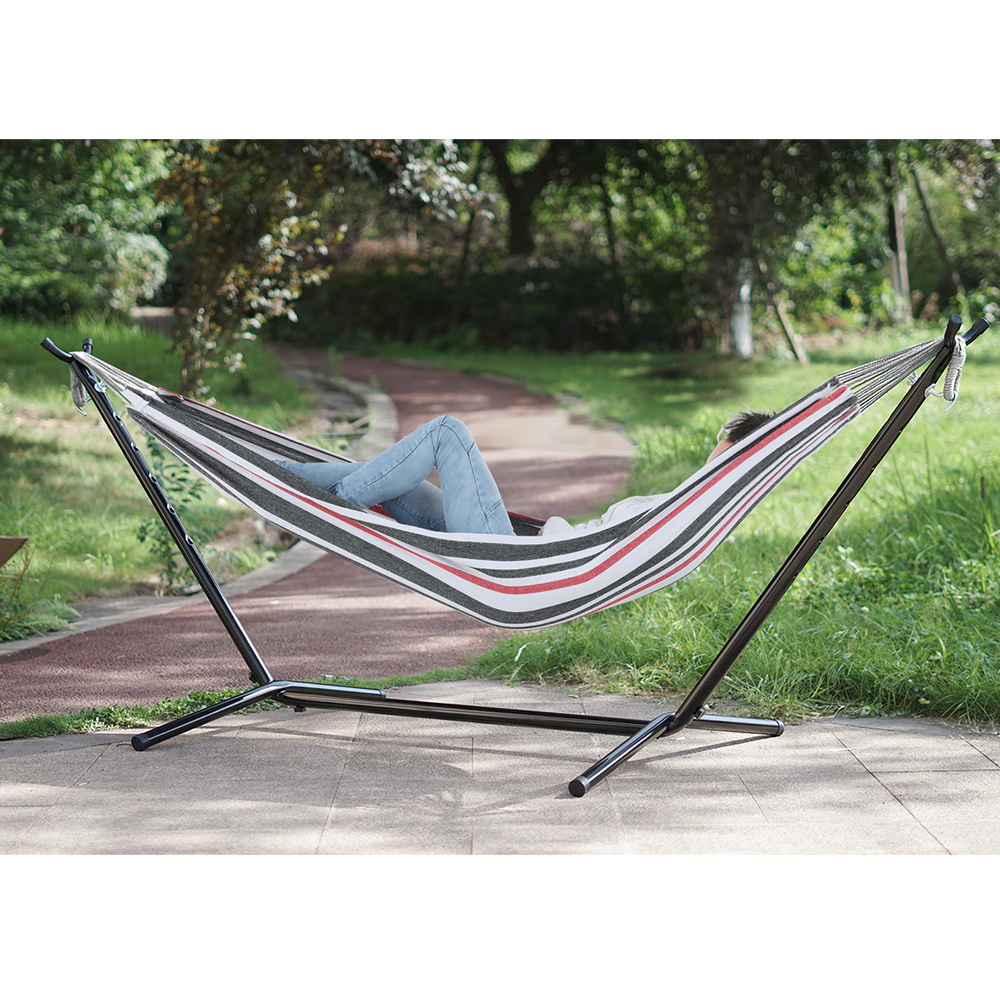 Pokiaľ sa rozhodnete pre hojdaciu sieť alebo závesné kreslo je potrebné myslieť na všetky doplnky. Určite sa vám bude hodiť stojan na hojdaciu sieť Olato. Je vyrobený z ocele v čiernej farbe. Je vhodný k zaveseniu siete pre jednu alebo dve osoby. Odporúčame ho umiestniť na rovný a pevný povrch. Spríjemní vám voľný čas a dopraje zaslúžený relax.