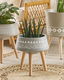 Tento kvetináč bude jemným a zároveň osobitým doplnkom každého moderného domova. Je vyrobený z odolnej a veľmi kvalitnej keramiky a vďaka neutrálnej sivobéžovej farbe jednoducho splynie s akýmkoľvek interiérom v boho alebo škandinávskom štýle. Vyniká zaujímavým vzorom, ktorý je inšpirovaný severskými motívmi, a drevenými nohami s povrchovou úpravou vo farbe svetlého dreva.