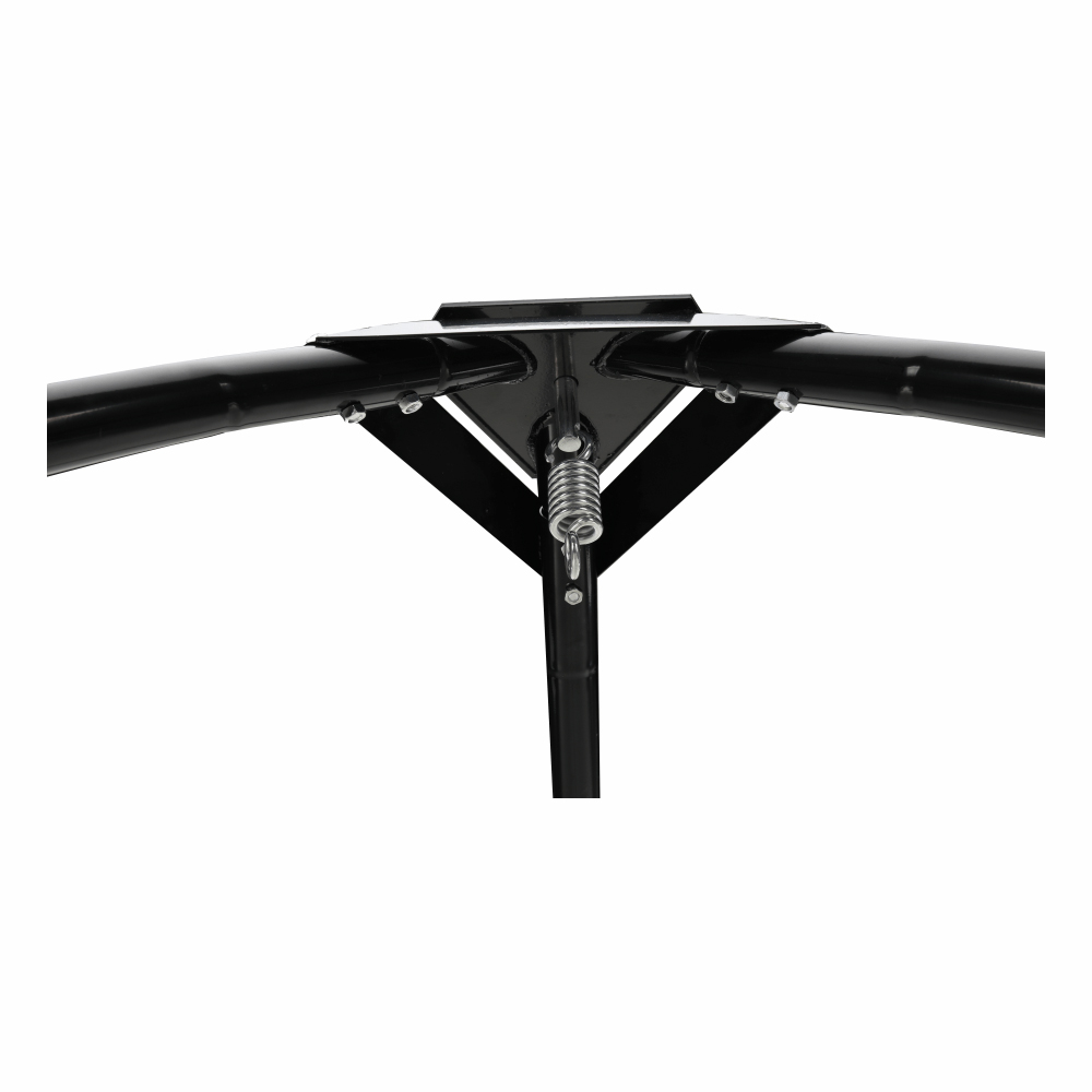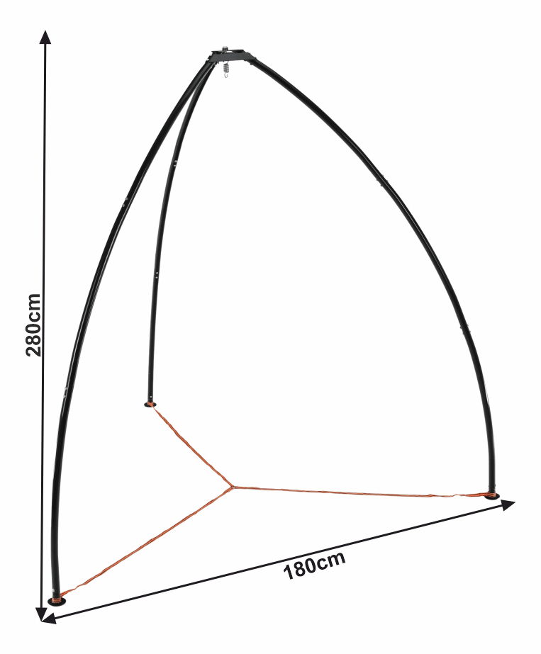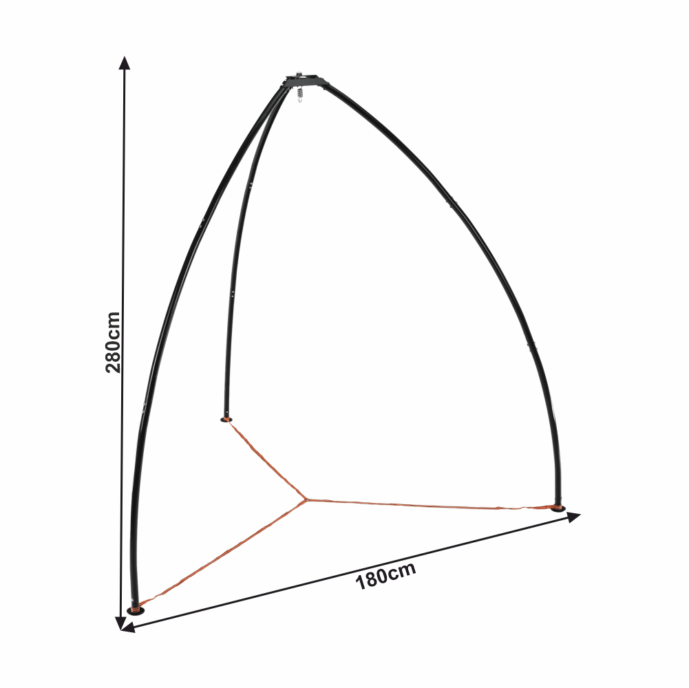 Stojan na závesné kreslo Hacco v čiernej farbe je vyrobený z ocele a má rozmery 180x180x280 cm. Vydrží až 200 kg váhy a je vhodný pre závesné kreslá. Stanovisko môže byť umiestnené na rovný a pevný povrch, čo zaručuje bezpečnosť a stabilitu použitia. Stanovisko na závesné kreslo Hacco je dodávané v demonte, čo umožňuje jednoduchú montáž a skladovanie. Je to ideálny doplnok pre tých, ktorí majú radi relaxáciu na čerstvom vzduchu alebo potrebujú prekonať nedostatok miesta v interiéri.
