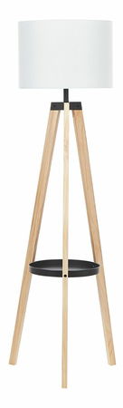 Táto stojaca lampa v škandinávskom dizajne zaujme najmä svojím statívovým podstavcom a neutrálnymi farbami, vďaka čomu sa hodí do interiérov v rôznych štýloch. Má tienidlo z bielej ľanovej tkaniny, ktorá príjemne rozptyľuje svetlo a v miestnosti vytvára útulnú atmosféru. Malá polička je ideálnym miestom na vystavenie obľúbenej rastliny alebo dekorácií. Lampu možno umiestniť do rôznych miestností, od obývacej izby až po domácu kanceláriu.
