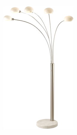 Stojanové svietidlo Classic style 58224 (nikel + opál) (Stmievateľné) je elegantné a nadčasové svietidlo, ktoré vyzerá skvele v každom domácom interiéri. Toto svietidlo je vyrobené z kovu, ktorý je potiahnutý niklovým matným povrchom a doplnený mramorovým podstavcom. Na vrchu sa nachádza opálové sklo, ktoré vytvára jemné a príjemné svetlo. Toto stojanové svietidlo má stmievač, takže si môžete prispôsobiť intenzitu svetla podľa Vašich potrieb. Rozmery svietidla sú DxŠxV: 1400x1100x2100 mm. Upozorňujeme, že svietidlo neobsahuje žiarovky 5xE14 40W 230V. S týmto svietidlom získate kvalitný a elegantný doplnok do vášho interiéru, ktorý Vám bude slúžiť po dlhé roky.