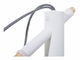Jej elegantný dizajn a kontrastné neutrálne farby vynikajú a zároveň zostávajú minimalistické. Jasné svetlo žiari z nastaviteľných tienidiel, ktorých kovový povrch krásne kontrastuje s mäkším drevom. Pevná drevená tyč a biely kovový podstavec zaisťujú stabilitu. Toto svietidlo sa dodáva s textilným káblom.