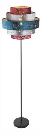 Podlahové svietidlo kovové čierne, zamatové viacfarebné, vypínač, D: 450, H: 1640, bez 1xE27 60W 230V