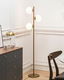 Skrášlite svoj domov pomocou tejto stojacej lampy v netradičnom tvare s tromi sklenenými tienidlami. Jej nádherná zlatá farba dokonale zapadne do interiérov zariadených v klasickom alebo modernom štýle. Táto lampa je pútavým dekoratívnym prvkom a skvele poslúži ako doplnkové osvetlenie v obývacej izbe alebo spálni.