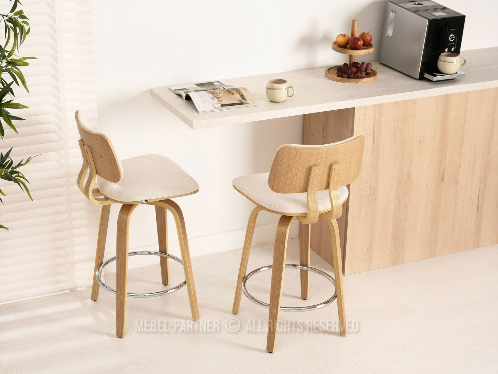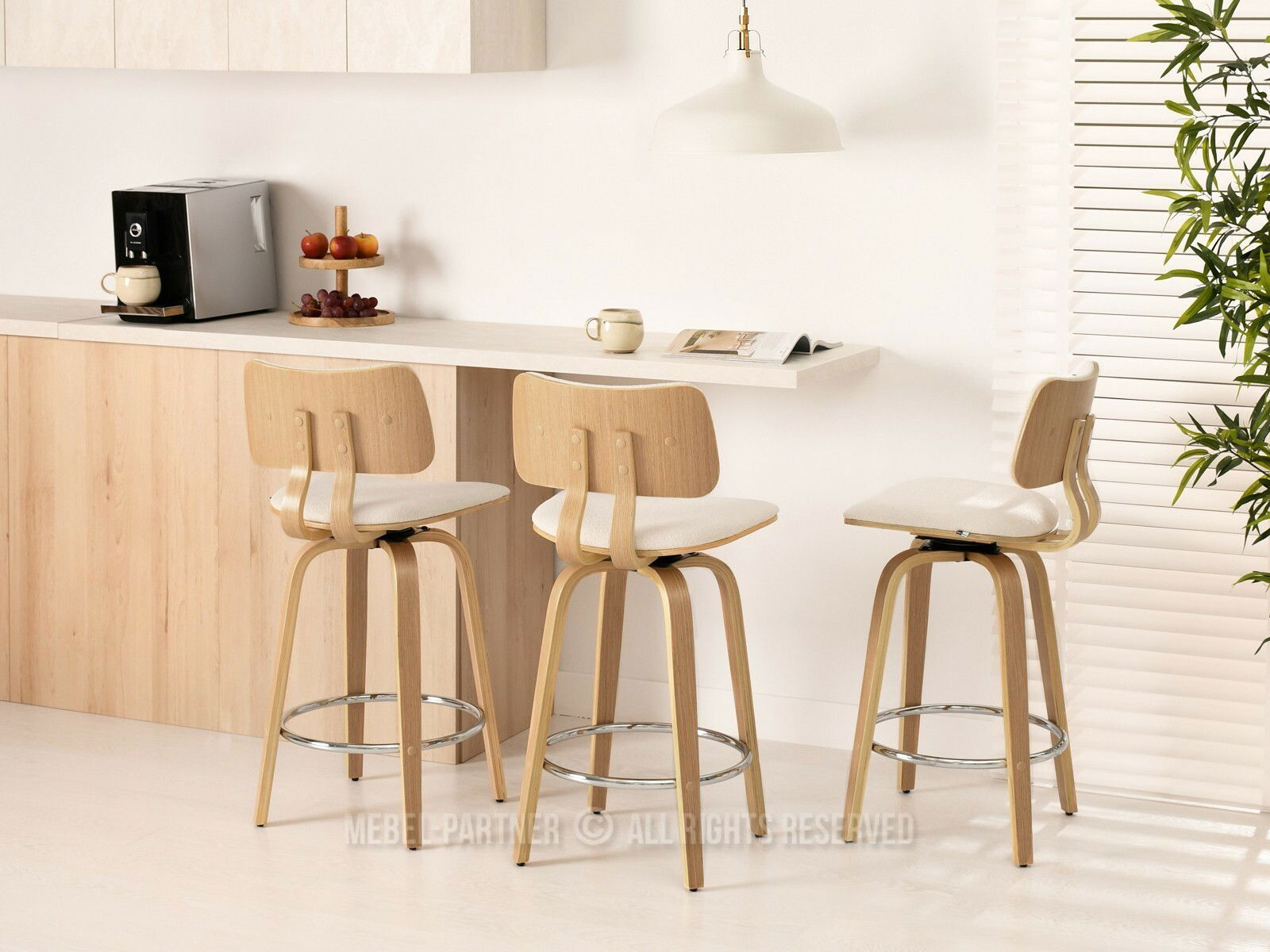 Stolička Heindrich v kombinácii krémovej látky a dreva dub predstavuje ideálnu voľbu pre štýlové zariadenie jedálne alebo kuchynského kúta. Vďaka pohodlnému čalúnenému sedáku a operadlu poskytuje komfort pri dlhšom sedení, či už pri jedálenských súpravách alebo barových pulte.