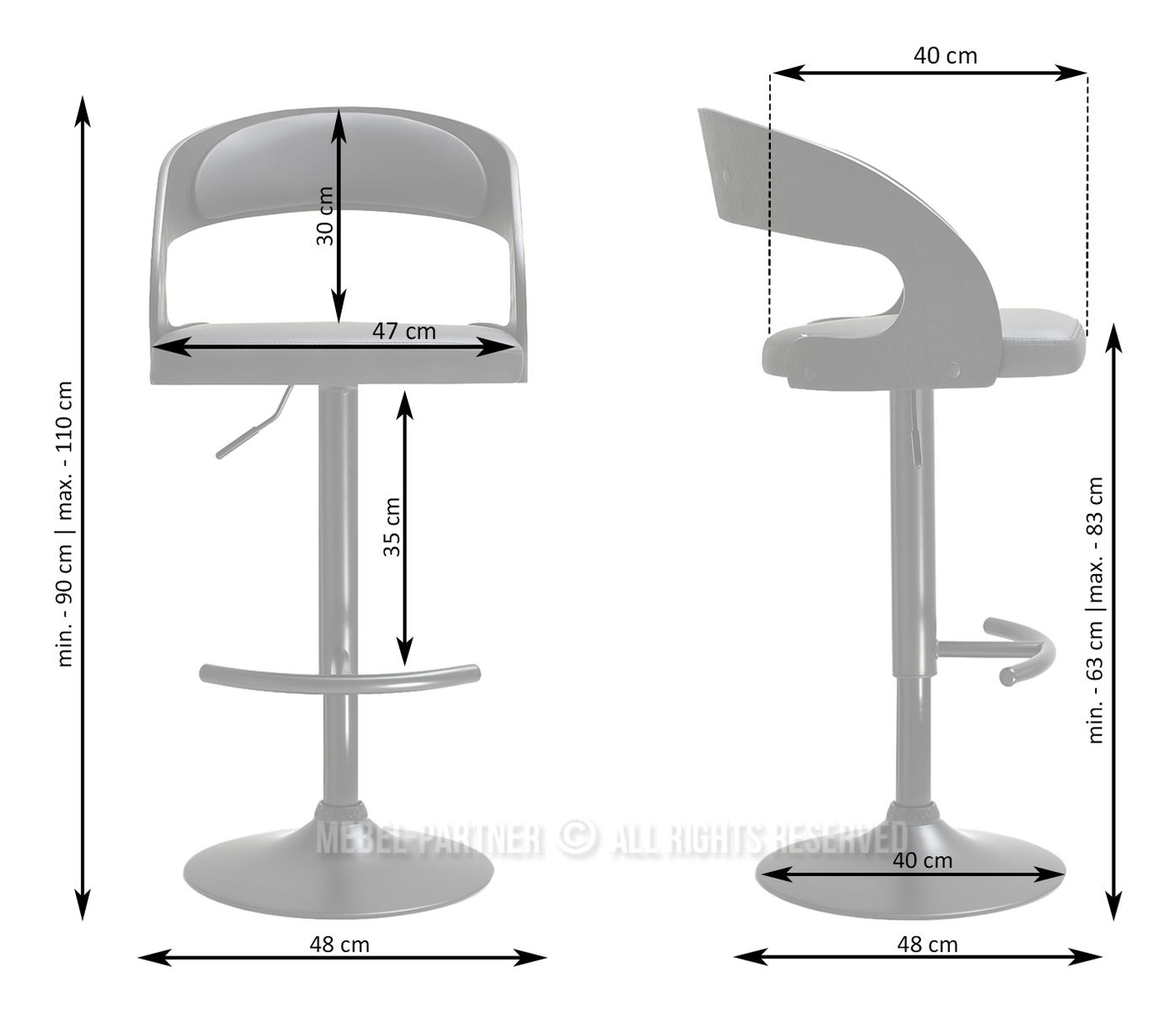 otočné sedadlo, operadlo áno, základňa centrálna noha, podrúčky nie, nastaviteľná Výška