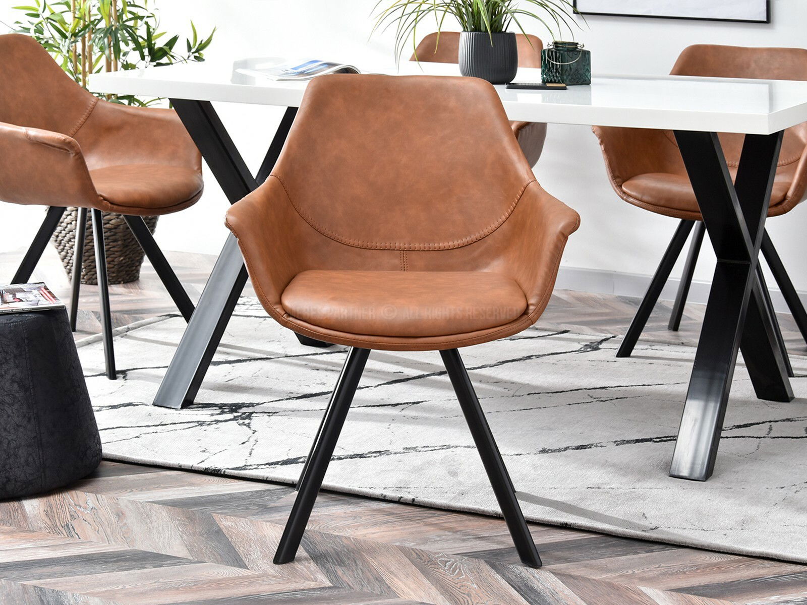 Stolička Mirabell v kombinácii hnedej a čiernej farby prináša do vášho interiéru spojenie komfortu a moderného dizajnu. Jej mäkké polstrovanie z kvalitnej ekokože zabezpečuje pohodlné sedenie, zatiaľ čo pevná kovová konštrukcia poskytuje stabilitu a odolnosť.