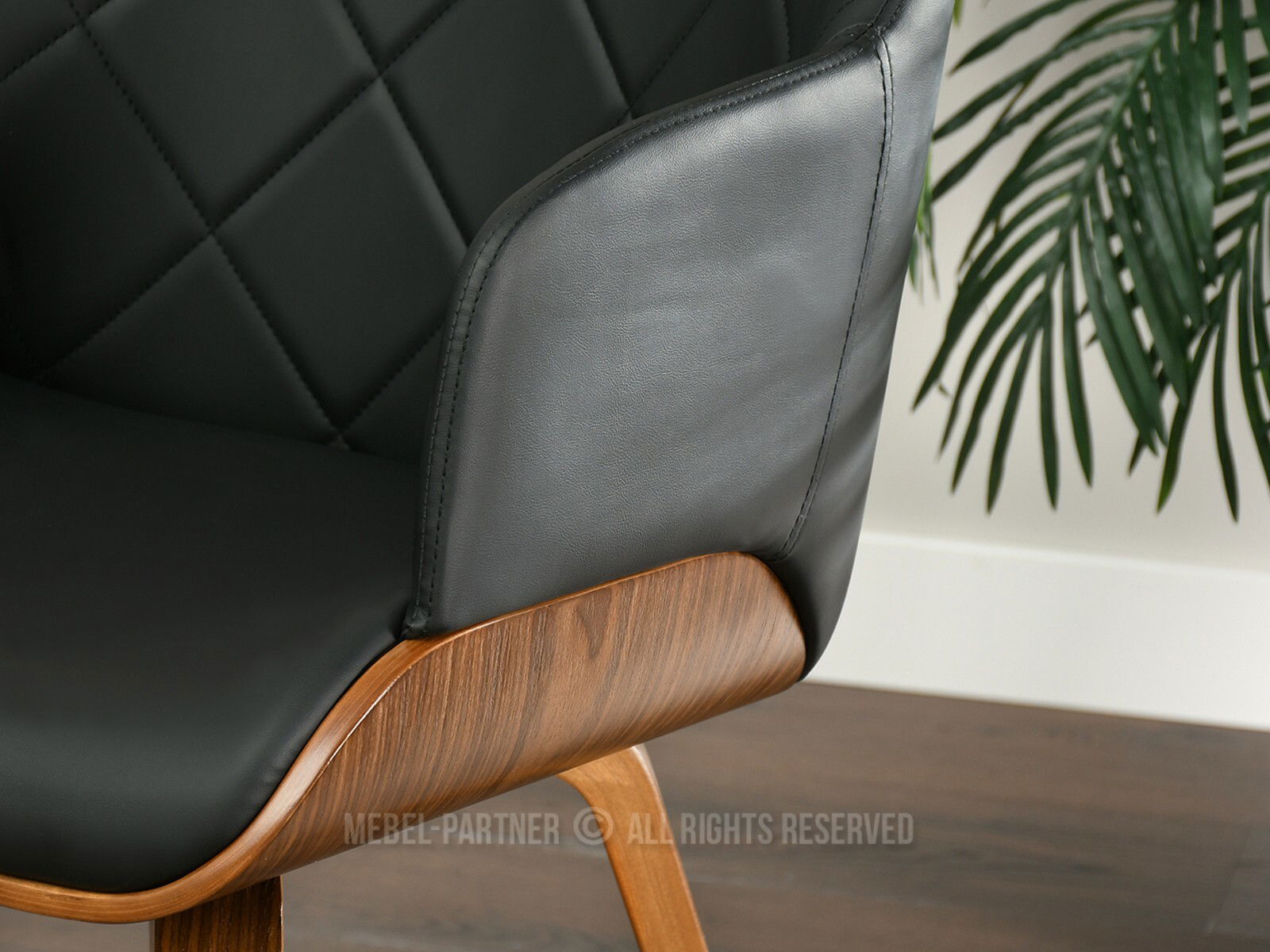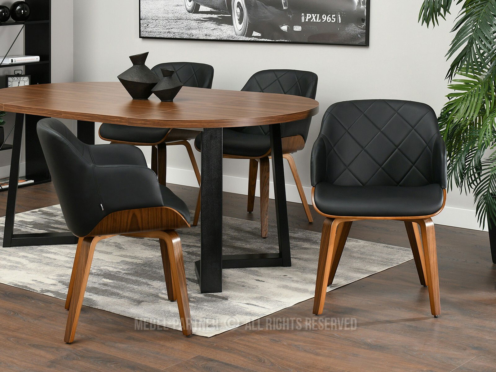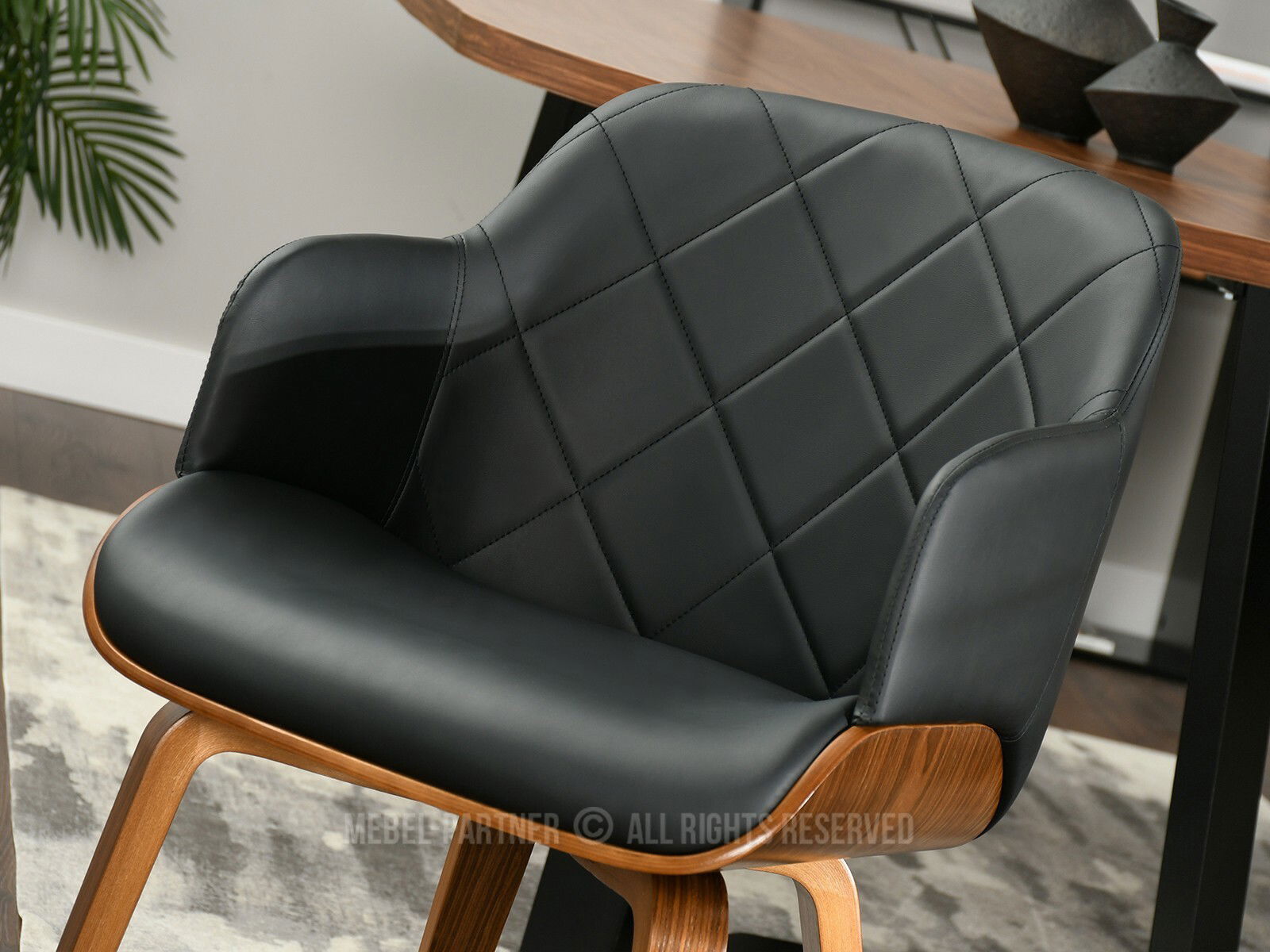 Stolička Sorien K v čiernej farbe s dreveným rámom v odtieni orecha je ideálnym doplnkom do vášho interiéru. Kombinuje pohodlie a štýl, vďaka čomu sa hodí tak do jedálenských súprav, ako aj k moderným konferenčným stolíkom či kreslám v obývacej izbe.