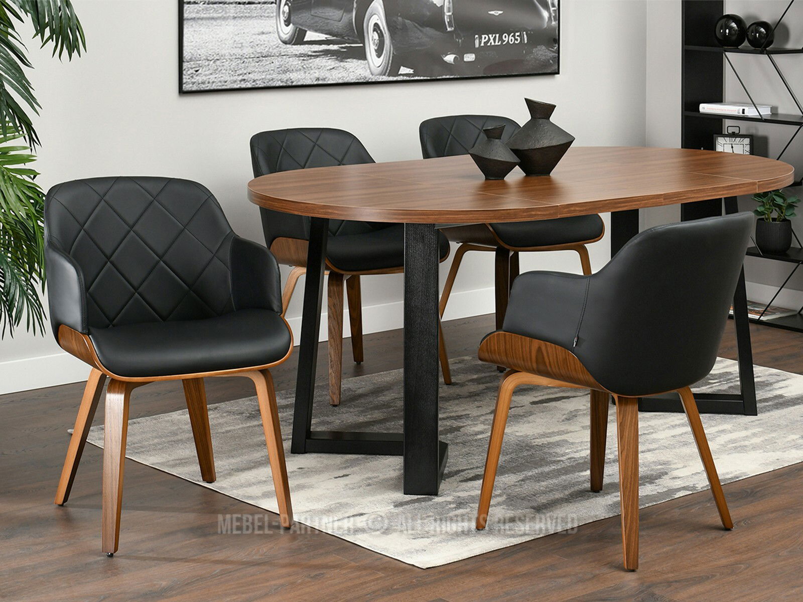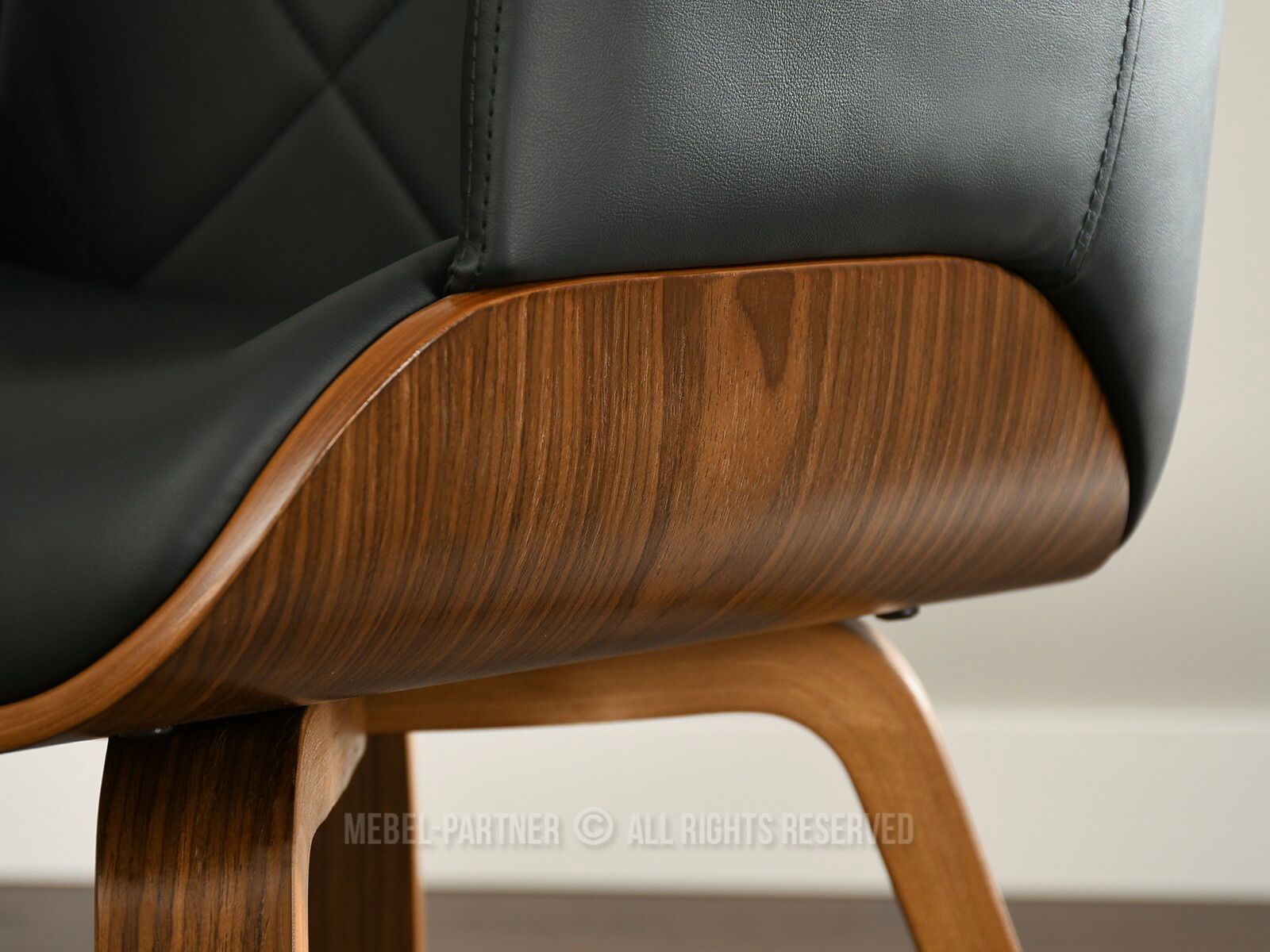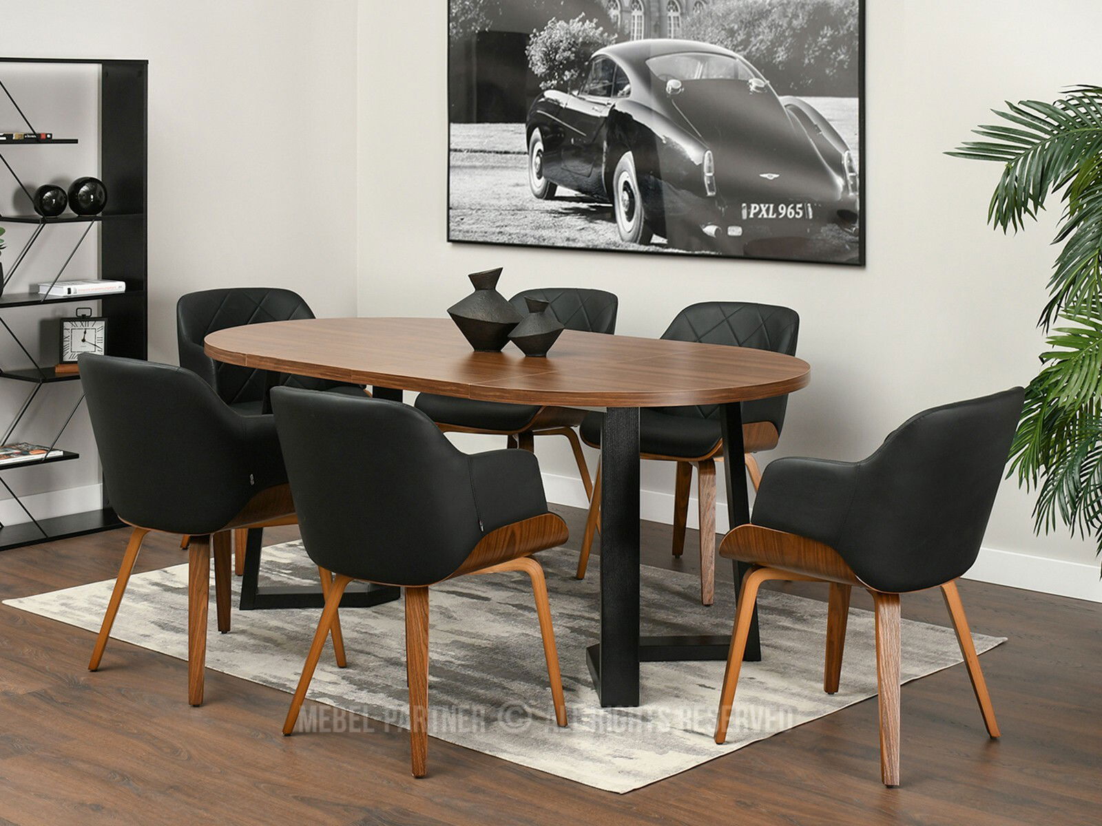 Stolička Sorien K v čiernej farbe s dreveným rámom v odtieni orecha je ideálnym doplnkom do vášho interiéru. Kombinuje pohodlie a štýl, vďaka čomu sa hodí tak do jedálenských súprav, ako aj k moderným konferenčným stolíkom či kreslám v obývacej izbe.