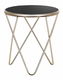 Vďaka tomuto stolíku vnesiete do svojej domácej kancelárie alebo obývačky dizajn v štýle art deco a štipku štýlu mid-century. Tento okrúhly stolík má zlaté nohy v tvare písmena V a stolovú dosku z čierneho tvrdeného skla, ktorá vďaka lesklej povrchovej úprave dodáva celému dizajnu elegantný vzhľad. Takýto nadčasový stolík doplní celý rad štýlov interiérového zariadenia - od retro štýlu až po moderný a glamour dizajn.