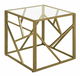 Tento odkladací stolík s moderným dizajnom inšpirovaným industriálnym štýlom určite nezostane bez povšimnutia. Geometrický kovový rám v zlatom farebnom prevedení a sklenená stolová doska vytvárajú výnimočnú kompozíciu, ktorá je ideálna do každej súčasnej obývačky alebo kancelárie. Stolík je vybavený ochrannými podložkami, ktoré vám umožnia premiestniť ho bez toho, aby ste sa museli obávať poškodenia podlahy.