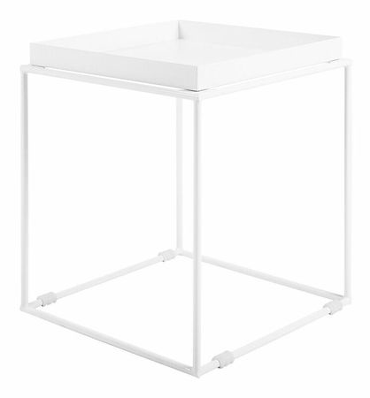 Tento kompaktný príručný stolík je kombináciou minimalistického štýlu a praktického dizajnu a do vášho interiéru vnesie nádych moderného štýlu. Kvalitná kovová konštrukcia s práškovým nástrekom ponúka odolnosť a trvácnosť a jemne matný povrch a monochromatické prevedenie dotvárajú univerzálny dizajn stolíka. Stolová doska v tvare podnosu má vyvýšené okraje, vďaka ktorým je servírovanie nápojov a občerstvenia o čosi jednoduchšie.