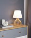 Táto originálna stolná lampa sa stane skvelým doplnkom každého moderného alebo škandinávsky ladeného interiéru. Vďaka klasickému bielemu látkovému tienidlu lampa poskytuje teplé a príjemné svetlo, zatiaľ čo drevený geometrický podstavec pôsobí nadčasovo a vynikne v každej obývačke, spálni alebo domácej kancelárii. Tento minimalistický doplnok bez problémov skrášli a zútulní akúkoľvek miestnosť vášho domova.