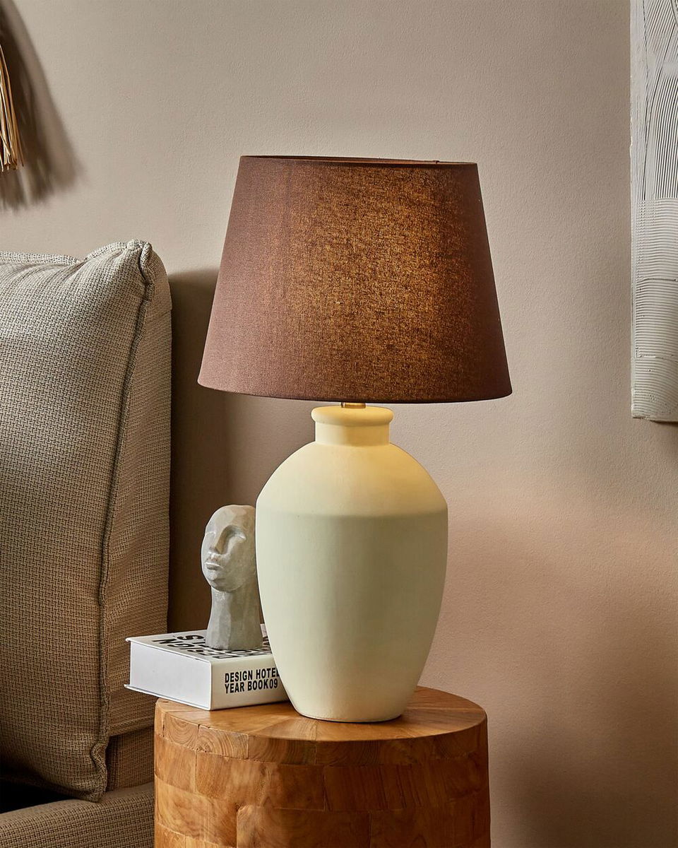 Skrášlite svoj interiér pomocou tejto stolnej lampy s keramickým podstavcom v bielej farbe. Jej jednoduchý, ale elegantný dizajn vnesie do vášho interiéru kúsok prírody. Ľanové tienidlo v tvare bubna nádherne dopĺňa keramický podstavec a vrhá teplú a príjemnú žiaru, takže je dokonalým doplnkom na vytvorenie útulnej atmosféry v akejkoľvek obývačke.