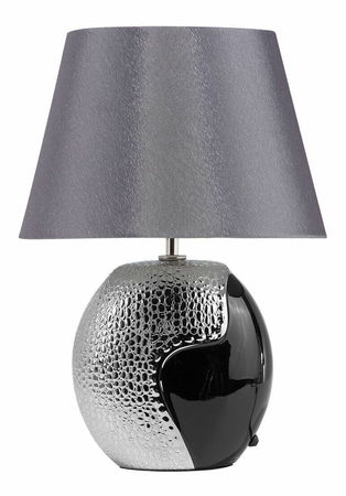 Táto jedinečná stolná lampa vnesie do vašej obývačky alebo spálne luxusnú atmosféru. Má textúrovaný podstavec v strieborno-čiernom vyhotovení, ktorý nádherne ladí s lesklým tienidlom z umelého hodvábu v reflexnej striebornej farbe. Vďaka klasickému tvaru a dizajnu zapadne do akéhokoľvek interiéru v modernom štýle.