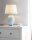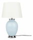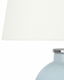 Táto elegantná stolná lampa naplní váš domov príjemným svetlom a nádherne vynikne na nočnom stolíku, odkladacom stolíku alebo na pracovnom stole v kancelárii. Má lesklý keramický podstavec v svetlomodrej farbe, ktorý dopĺňa jemné valcovité tienidlo zo zmesi bavlny a polyesteru. Táto elegantná lampa s retro nádychom sa stane vkusným doplnkom každej modernej obývačky alebo spálne.