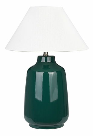 Táto jednoduchá, ale veľmi elegantná lampa príjemne doplní interiér zariadený v tradičnom alebo minimalistickom štýle. Keramický podstavec v nádhernej tmavozelenej farbe s vysokým leskom pekne kontrastuje s bielym látkovým tienidlom a vyzerá očarujúco. Kužeľovité tienidlo je vyrobené z kvalitného ľanu a ponúka jemné rozptýlené osvetlenie.