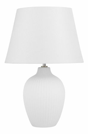 Táto štýlová stolná lampa nádherne rozžiari akúkoľvek miestnosť vo vašom interiéri. Elegantný a zároveň minimalistický vzhľad svietidla podčiarkuje textúrovaný podstavec v oblom tvare, ktorý je charakteristický pre tradičný štýl. Lampa je vyrobená z keramiky a dokonale vynikne v spálni na nočnom stolíku alebo v obývacej izbe na komode.