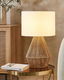 Táto elegantná lampa s dizajnovým podstavcom sa stane výrazným doplnkom každého stola nielen počas večerných hodín, ale aj počas dňa. Vďaka papierovému výpletu na kovovom ráme a bielemu látkovému tienidlu jemne rozžiari celú miestnosť. Lampa predstavuje dokonalý doplnok na akýkoľvek nočný alebo konferenčný stolík, pričom do interiéru vnesie prírodný charakter.