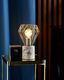 Jedinečná lampa, ktorá je ideálnou voľbou do každého moderného interiéru. Má geometrický rám z mosadze v trendovom diamantovom tvare a jemnú mramorovú kovovú základňu so sivými žilkami. Leštené línie a lesklý povrch z nej robia skvelý doplnok do každého interiéru, zatiaľ čo odhalená žiarovka distribuuje jasné a intenzívne svetlo, ktoré je ideálne na čítanie alebo štúdium.