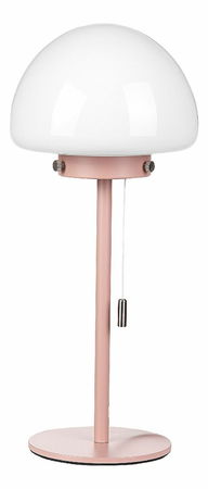 Vylepšite vzhľad svojej domácej kancelárie s touto pútavou stolnou lampou. Pologuľaté sklenené tienidlo v bielej farbe dopĺňa ružový kovový stojan. Vďaka svojmu dizajnu určite upúta pozornosť a výborne zapadne do obývacej izby alebo spálne zariadenej v retro alebo modernom štýle. Lampa sa dá jednoducho zapnúť a vypnúť vďaka vypínaču na šnúrke.