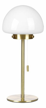 Vylepšite vzhľad svojej domácej kancelárie s touto pútavou stolnou lampou. Pologuľaté sklenené tienidlo v bielej farbe dopĺňa zlatý kovový stojan. Vďaka svojmu dizajnu určite upúta pozornosť a výborne zapadne do obývacej izby alebo spálne zariadenej v retro alebo modernom štýle. Lampa sa dá jednoducho zapnúť a vypnúť vďaka vypínaču na šnúrke.