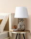 Dodajte svojmu interiéru jedinečnosť pomocou tejto stolnej lampy inšpirovanej ovocím. Tento nevšedný kúsok bude dokonalým doplnkom každého moderného, súčasného alebo vintage interiéru. Je vyrobená z vysokokvalitnej keramiky, je mimoriadne odolná a zároveň stabilná. Vďaka povrchovej úprave v štýlovej striebornej farbe sa bude hodiť k väčšine interiérových štýlov. Lampu dopĺňa textúrované kužeľovité tienidlo v bielej farbe. Rozžiarte svoj domov touto originálnou lampou v tvare ananásu.