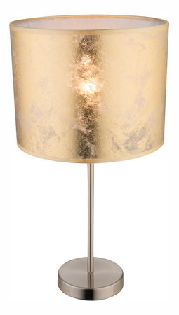 Stolové svietidlo nikel matný plast zlatá textília výška tienidla 20 cm vypínač priemer Ø 260 V: 500 bez 1xE27 60W 230V.