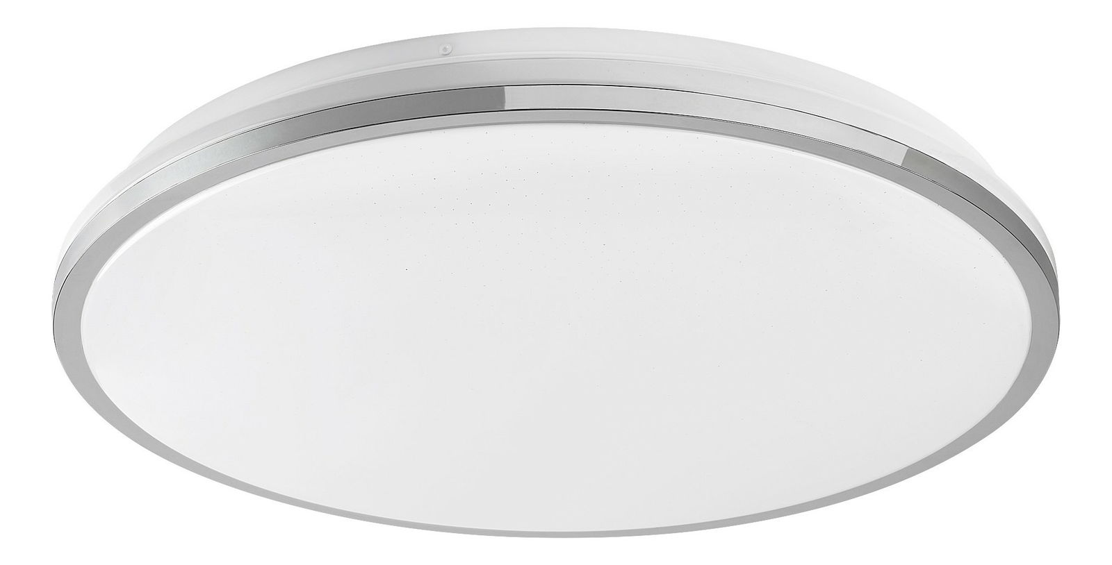 Stropné multifunkčné svietidlo Babefit HERO 3478 (chrómová + biela) výška 7,5 cm je moderným doplnkom Vášho domova. Svietidlo disponuje diaľkovým ovládaním, ktoré Vám umožní meniť farbu svetla podľa momentálnej nálady. Využite aj funkciu stmievania svetla na vytvorenie romantického prostredia a vytvorte si tak dokonalú atmosféru. Svietidlo je vyrobené z kovu a tienidlo je z umelého materiálu. Od stropu svietidlo vzdialené 7,5 cm a má IP krytie IP20. Trieda ochrany I a spotreba energie je 50 kWh/1000 Ah. Špecifikácia svietidla LED 50W poskytuje svetelný tok svetelného zdroja 4500 lm a životnosť svetelného zdroja je 25000 hodín. Potrebné napätie je 230V ~ 50Hz. Teplota svetla je v rozsahu 3000-6500 Kelvinov a energetická trieda svetelného zdroja je F. Farebná teplota je nastaviteľná a svetlo je stmievateľné. Spôsob stmievania je s diaľkovým ovládaním a svietidlo má aj funkciu časovača. Nastavenie časovača je 1800 sekúnd. Svietidlo má aj nočnú funkciu a hviezdny efekt. Priemer svietidla je 49 cm.