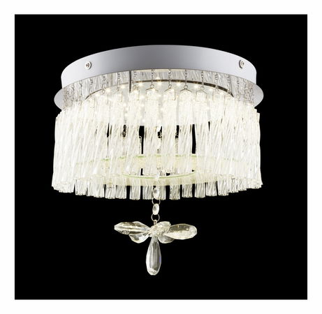 Stropné/nástenné svietidlo LED Mathilda 68397-12 (chróm) je skvelou voľbou pre tých, ktorí hľadajú moderné a elegantné svietidlo do svojho interiéru. Toto stropné svietidlo sa vyznačuje krásnym chrómovým dizajnom, ktorý je doplnený sklenenými tyčinkami a K9 kryštálmi. V strede svietidla sa nachádza veľký kvet, ktorý dodáva celému svietidlu jemnosť a šarm. Svietidlo má priemer Ø 280 a je vhodné pre montáž na strop alebo na stenu. Je napájané na 220V a obsahuje jednu žiarovku LED 40V 12W s jasom 840lm a teplotou farby 4000K. Toto svietidlo je nielen krásne a moderné, ale aj veľmi úsporné a funkčné, pretože poskytuje dostatok svetla pre akýkoľvek interiér.