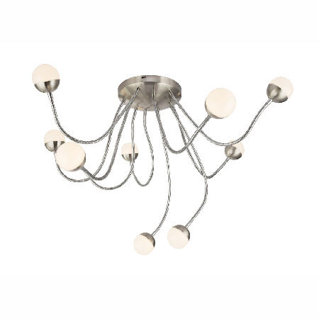 Stropné svetlo nikel, chróm, plast, opál biela, 10 x flexo, stlmenie, D: 1040, H: 490, vrátane 10xLED 5W 230, 470lm, 3000K