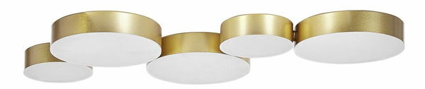 V jednoduchosti je krása a toto stropné svietidlo je toho dôkazom. Je vyrobené z odolného kovu a je prekvapivo ľahké, ale odolné. Svietidlo sa skladá z piatich tienidiel so zlatou povrchovou úpravou, ktorá im dodáva elegantný nádych. Svietidlo má integrované LED svetlá, takže si nemusíte robiť starosti so žiarovkami. Lampu umiestnite do obývačky, kúpeľne alebo spálne, aby ste miestnosť obohatili o štýlový doplnok.