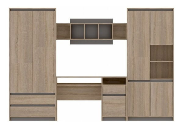 Študentská izba Maxwell II je ideálnym nábytkom pre mladých ľudí, ktorí potrebujú dostatok úložného priestoru. Výška izby je 192,5 cm, hĺbka 53 cm a je vyrobená z laminovanej drevotriesky, ktorá zaručuje jej trvanlivosť. Dizajn kombinuje Dub sonoma a grafitovú farbu, ktoré spolu vytvárajú moderný a elegantný vzhľad. Študentská izba Maxwell II obsahuje police, zásuvky a skrinky, takže Vaše deti môžu usporiadať svoje veci presne tak, ako potrebujú. Táto izba určite zlepší organizáciu a vzhľad akéhokoľvek študentského alebo mládežníckeho pokoja.
