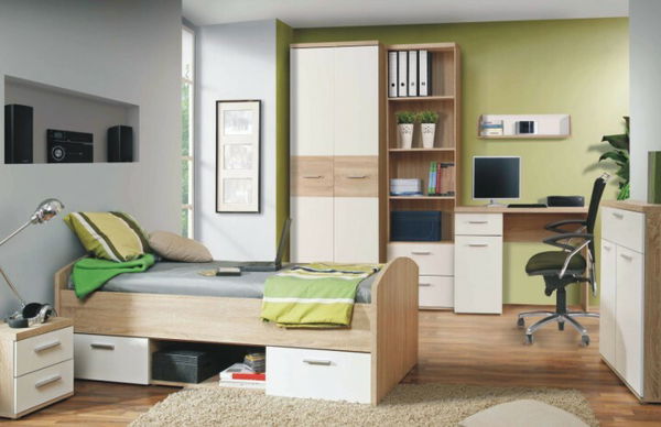 Sektorová zostava neutrálnej farebnej kombinácie dreva dub sonoma a bielej, je vhodná na zariadenie detských alebo študentských izieb pre dievčatá aj chlapcov. Sektor obsahuje sedem prvkov, pomocou ktorých si vyskladáte izbu podľa Vašich predstáv. Poskytuje dostatok úložného priestoru pre každé dieťa. Materiál použitý pri výrobe bola fóliovaná DTD.